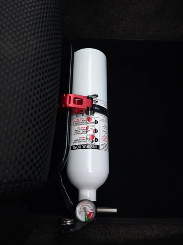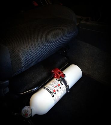 THE VIRTUALLY TOOL LESS DESIGN ALLOWS YOU TO MOUNT A 2.5LB - 5LB FIRE EXTINGUISHER TO YOUR VEHICLE'S SEAT ADJUSTMENT BAR, WITHOUT REMOVING ANY EXISTING HARDWARE OR ADDING ANY BULKY BRACKETS. OUR MOUNT KIT ALSO ALLOWS THE USER TO STILL ADJUST THE POSITION OF THE SEAT ONCE INSTALLED.